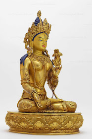 Amitayus Buddha has a Bodhisattva appearance, Amitayus Buddha also depicted red in color and holds a long-life vase in the lap with both hands. The long life vase, which contains the nectar of immortality. Amitayus Buddha is belongs to one of most the important and popular set known as the Three Long-life Buddha families, namely the followings:-